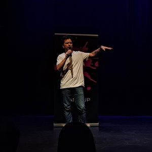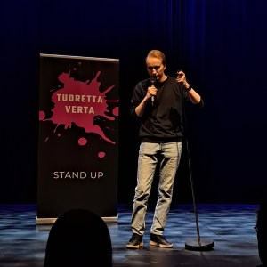 Seuraavana lavalle tullut Joonas Ranta kertoi tehneensä sadannen keikkansa vastikään. Olen myös Joonasta nähnyt monta kertaa ja tää oli ehdottomasti paras veto, mitä koskaan olen häneltä nähnyt. Joonas kävelee usein lavalla setin aikana edestakaisin, ja ystävänpäivänä se sopi erityisen hyvin muun rytmin kanssa yhteen. Joonaksen lavapersoona esittelee itseään ja elämäntarinaansa vähän kuin olisi henkilöhaastattelussa. Tämä myös mahdollistaa sen, että juttujen punchit tulevat yllättävämmin ja oudommin kun tilanne tuntuu vähän vieraan ihmisen jutustelulta ennemmän kuin lavakomiikalta. Yleisön iän takia osa Joonaksen lapsijutuista ei saanut suoraa kosketuspintaa yleisöön, mutta päästyään lapsuudenperheestään kertovaan osioon Joonas sai yleisön todella hyvään rytmiin ja mukaan. Toimiva vartin setti tämäkin.
