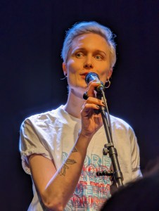 Ensi-illan lämmittelijänä toimi Illusia Sarvas, joka aloitti suoraa queer -sisältöisellä materiaalilla. Yleisö selkeästi asettui heti esiintyjän puolelle, mutta reagoi vielä suhteellisen maltillisesti. Katsomon takaosassa oli meitä naiskoomikoita useampia ja se miten kovaan ääneen me nauroimme suhteessa muuhun yleisöön kertoi ehkä siitä, että yleisö oli hieman toisenlaista kuin stand up keikoilla yleensä. Erityisesti äänekäs nauraminen on naisille muualla yhteiskunnassa vähemmän toivottua, ja yleisöllä meni hetki uskaltautua päästämään nauru kokonaisena ulos asti. Illusian setin loppupuolelle sijoittunut yhteislaulu Not all men vapautti vihdoin loputkin yleisöstä ja sitoi kaikki katsojat hienosti yhtenäiseksi hihitteleväksi massaksi.